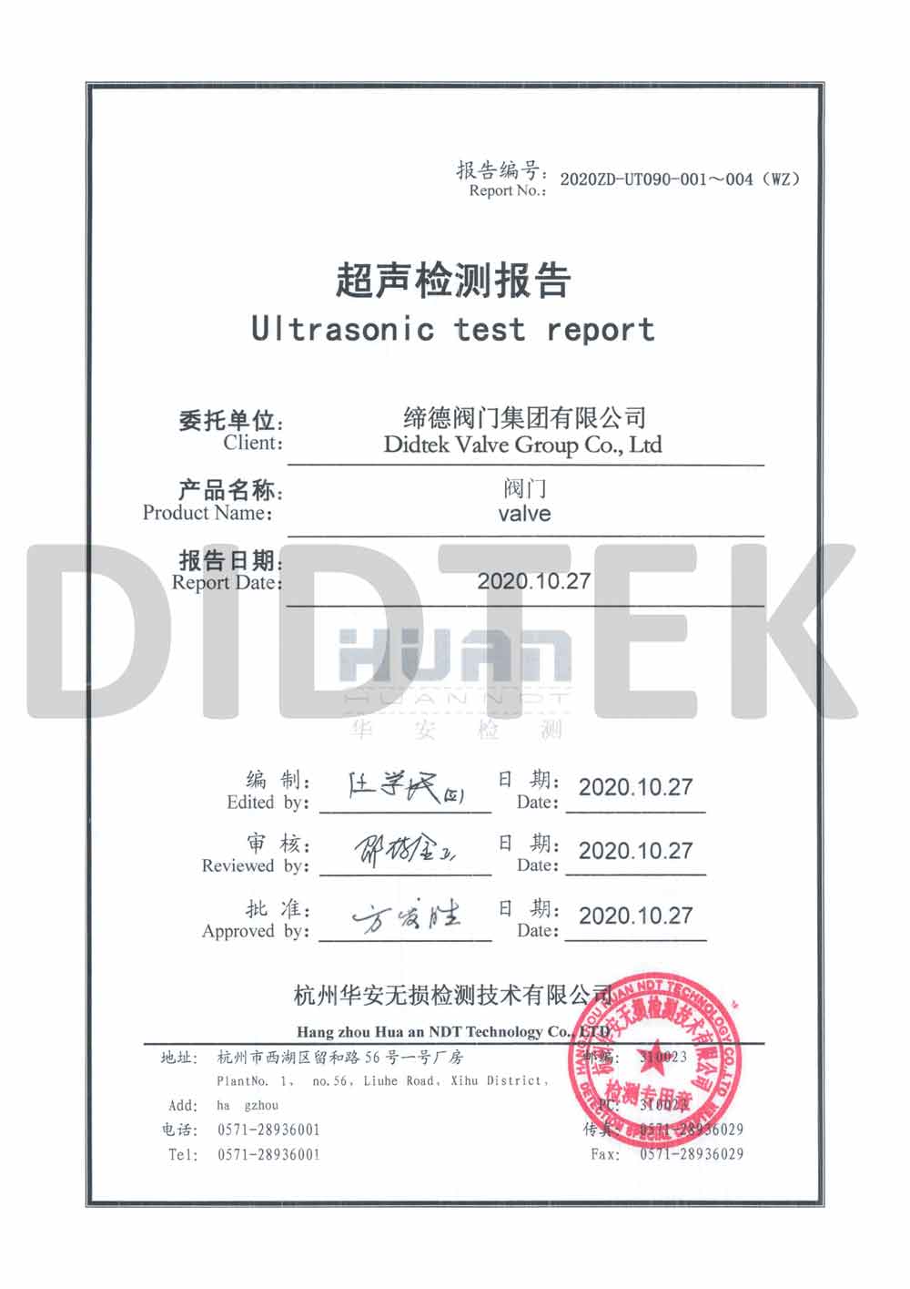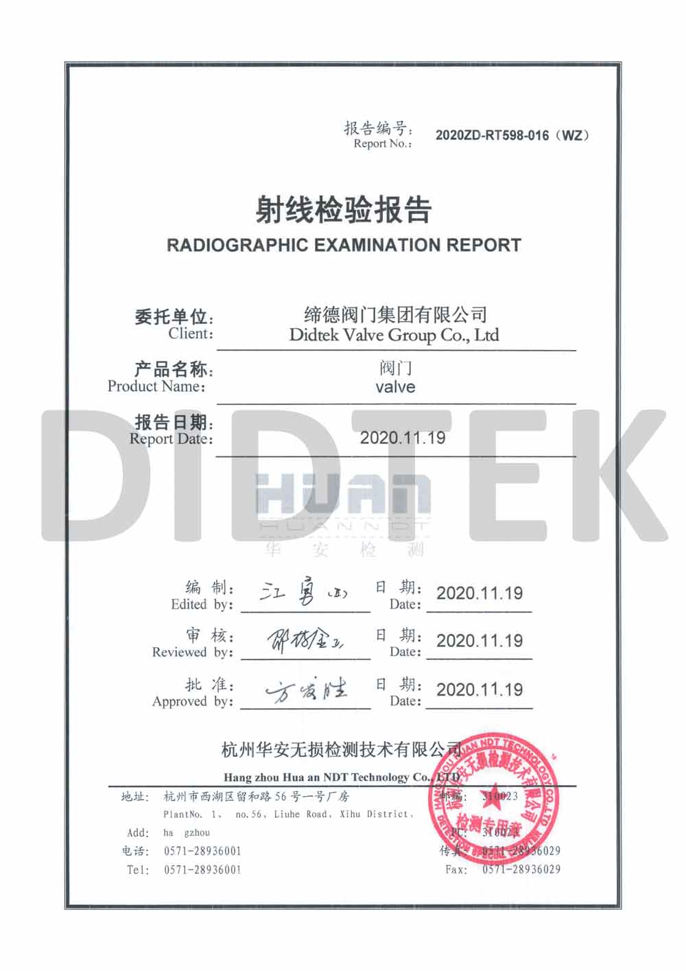 Didtek Valve Group Co., Ltd العنوان: No.1 Puyi Road ، Oubei Town ، Yongjia County ، Zhejiang ، Prchina.