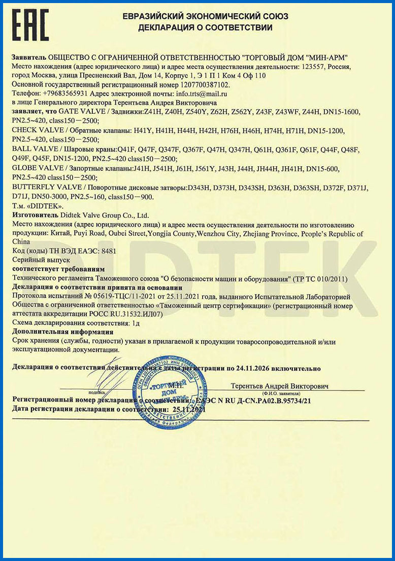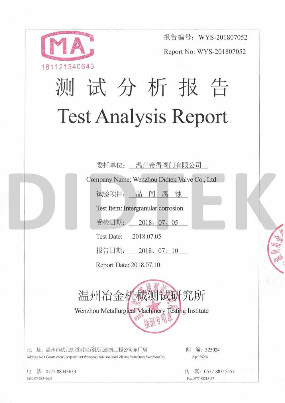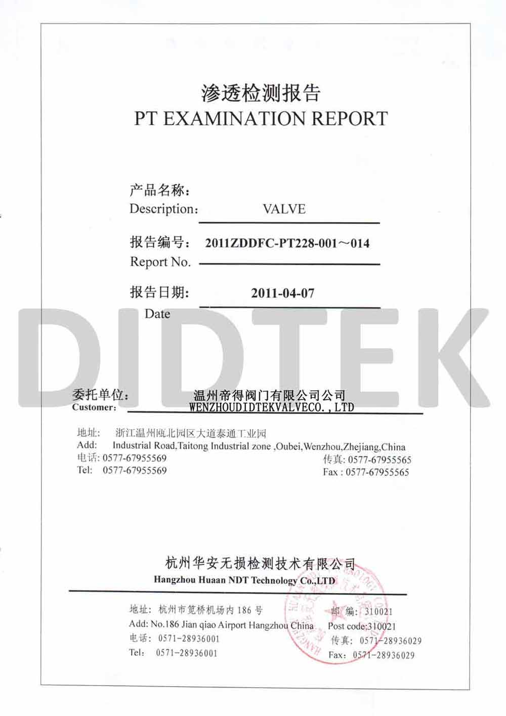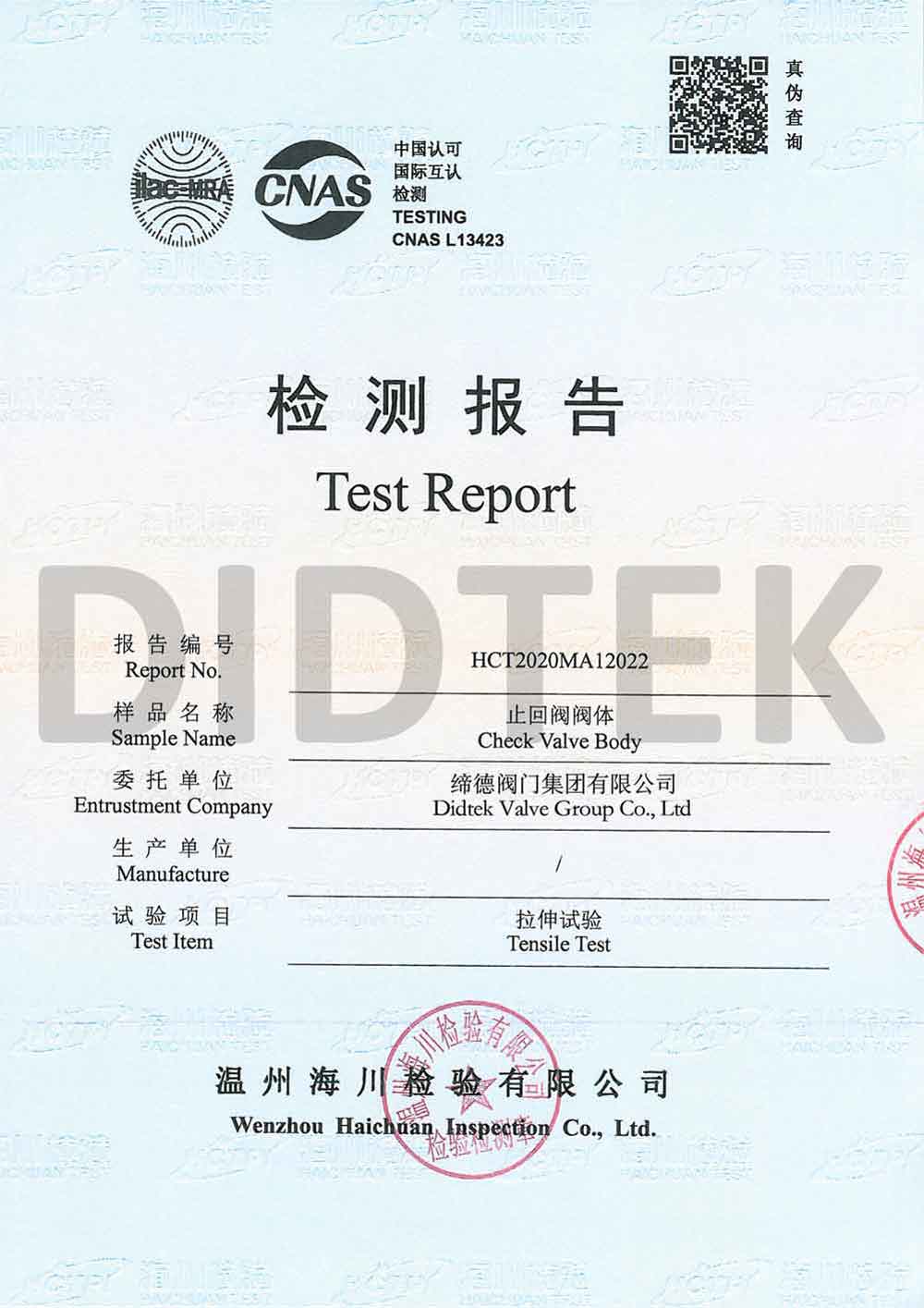 من أجل تعزيز الاعتراف بالعلامة التجارية وتوسيع حصة السوق في العلامة التجارية DIDTEK ، حصلت شركتنا على العديد من الشهادات المهنية على الصعيدين المحلي والدولي. تشمل هذه الشهادات ترخيص تصنيع المعدات الخاصة TS China ، شهادة اختبار نوع المعدات الخاصة ، شهادة نظام إدارة الجودة ISO 9001 ، شهادة API 6D American Petroleum معهد 6D ، Lloyd's Record LRV CE EU CESTURAL الشهادة ، شهادة الاتحاد الجمركي في روسيا (EAC) ، شهادة انبعاثات هارب صمام TA-LUFT ، ISO 15848 Valve شهادة التسرب الدقيقة للانبعاثات الهاربة ، API 607 شهادات الحريق ، شهادة API 6FA Fire ، وغيرها. توفر هذه الشهادات أساسًا متينًا وضمانًا للترويج للعلامة التجارية DIDTEK.